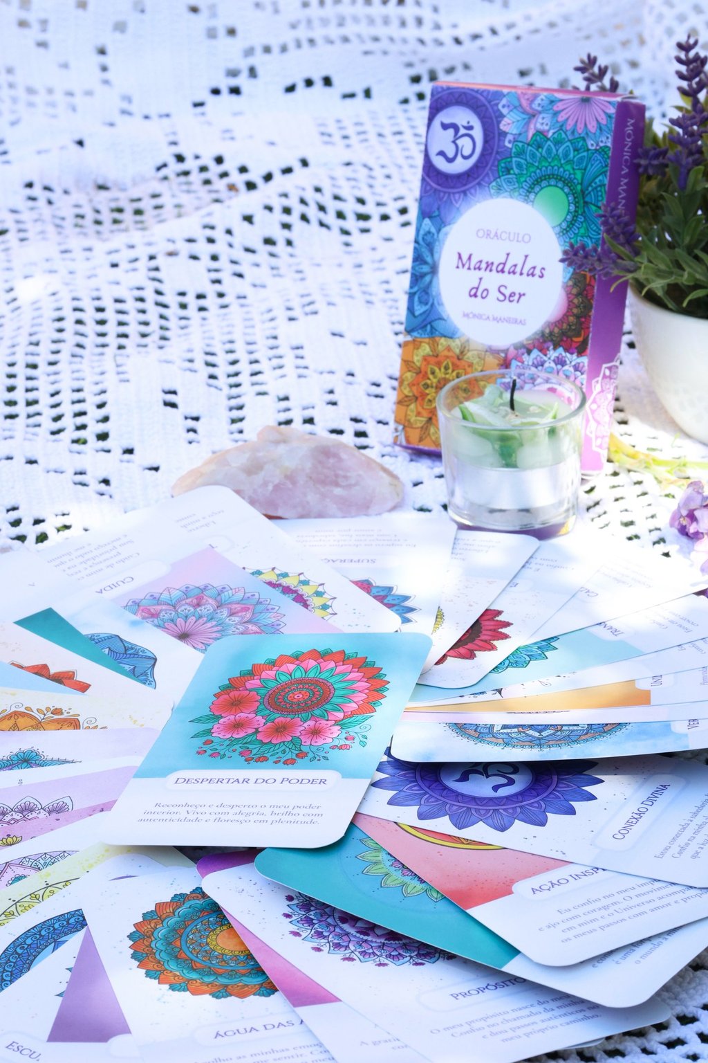 Livro explicativo, com o significado de cada mandala e mensagens de orientação.